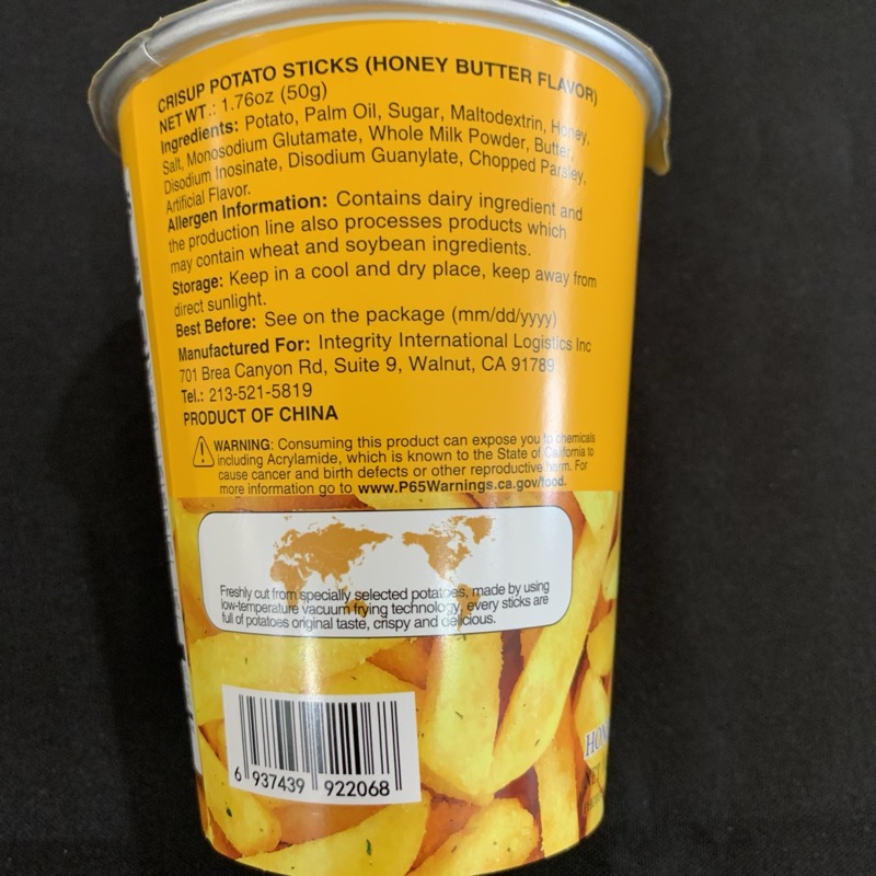 Delicious potato sticks flavored like honey butter. In a convenient container ready to eat on the go! 1.76 ounce package