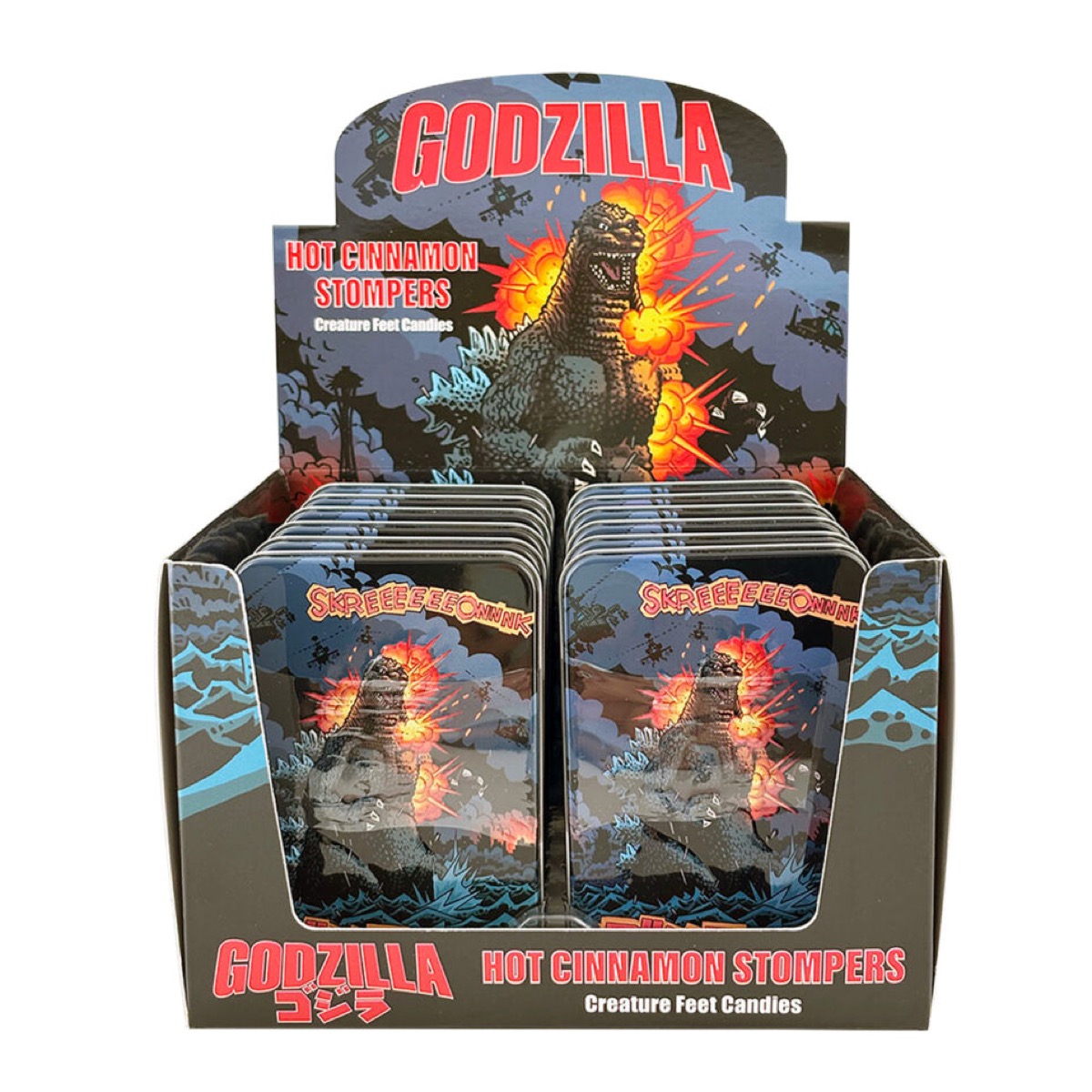 Colossal cinnamon candy fills this classic tin with 1.0 ounces of hot cinnamon footprints.