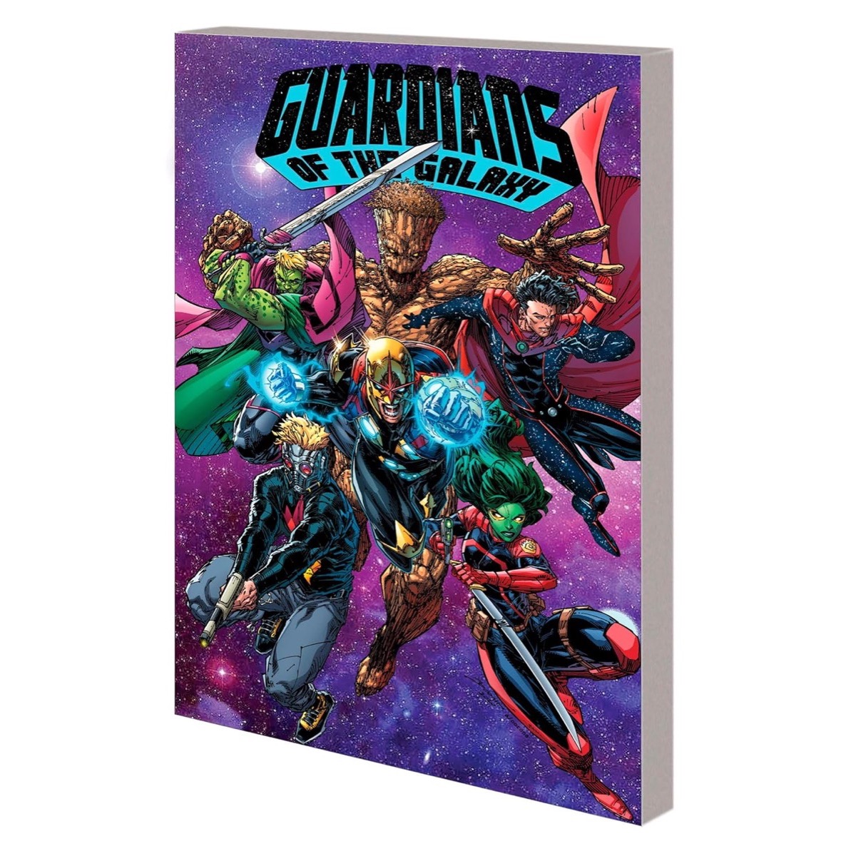 A new age of space starts here! They were soldiers, misfits, mercenaries, thieves and a family. They were heroes — but times have changed. The galaxy no longer needs heroes. It needs super heroes! Now when the call goes forth — whether it’s from a stranded team of planetary explorers or Emperor Hulkling himself — the Guardians of the Galaxy answer! As half the team defends the Kree/Skrull Throneworld against a deadlier threat than they’ve ever faced before, the other half investigates a terrifying sacrificial cult on a mysterious planet — with the power to plunge the universe into war! New headquarters! New costumes! New teammates! An all-new enemy you’ll have to see to believe! And a whole cosmos of trouble! Get on board, True Believer — it’s going to be the ride of your life! Collecting GUARDIANS OF THE GALAXY (2020) #13-18.