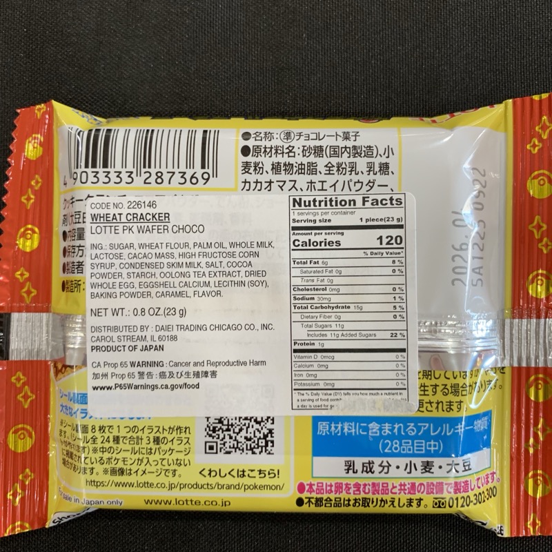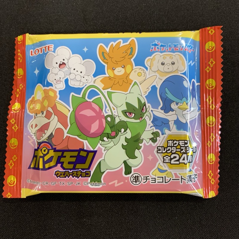 Wafer cookie with chocolate filling and a holographic Pokemon sticker!! 0.8 oz each