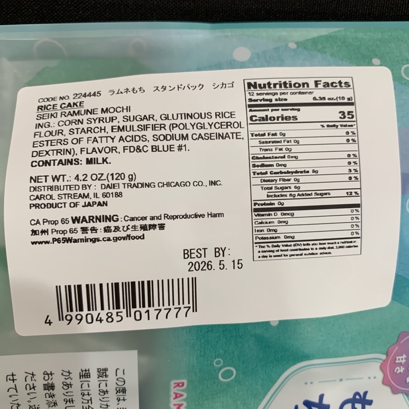 Ramune flavored mochi, individually wrapped candies. 4.5 ounce package