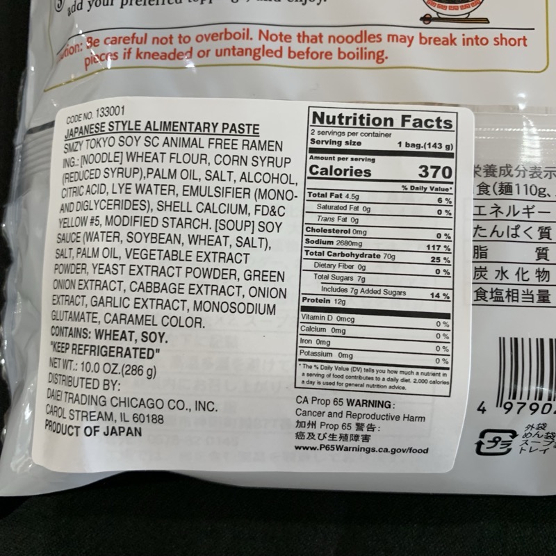 Instant ramen, soy sauce flavor, comes with sauce packet and noodles. 10 oz package.