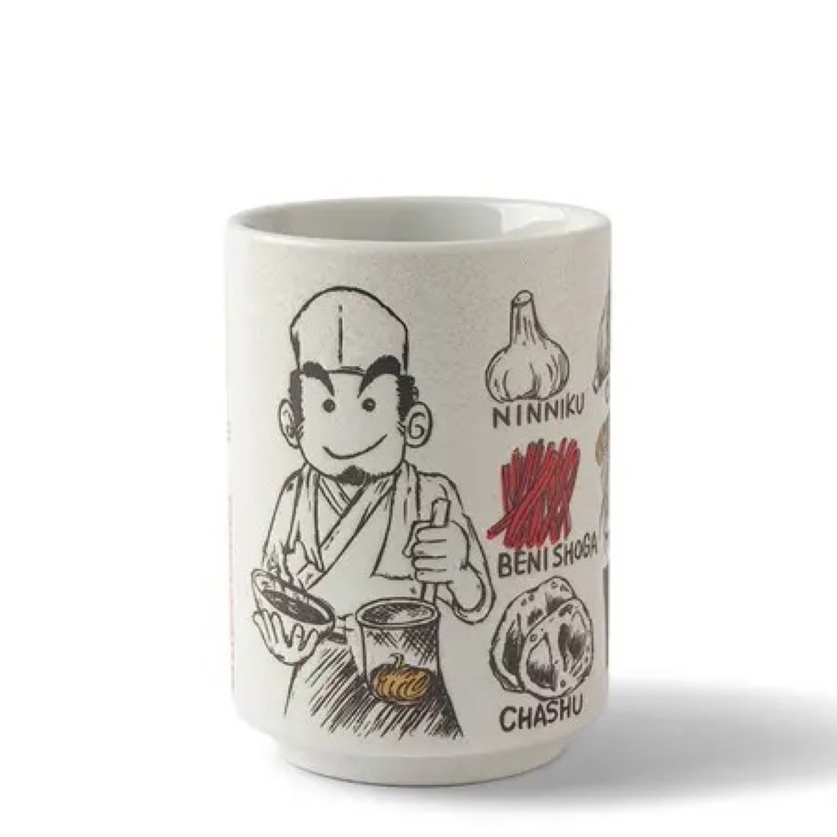 Scenes from a ramen shop – 2-7/8″ diam. x 4″h. – 10 oz. capacity. – Ceramic. – Made in Japan.