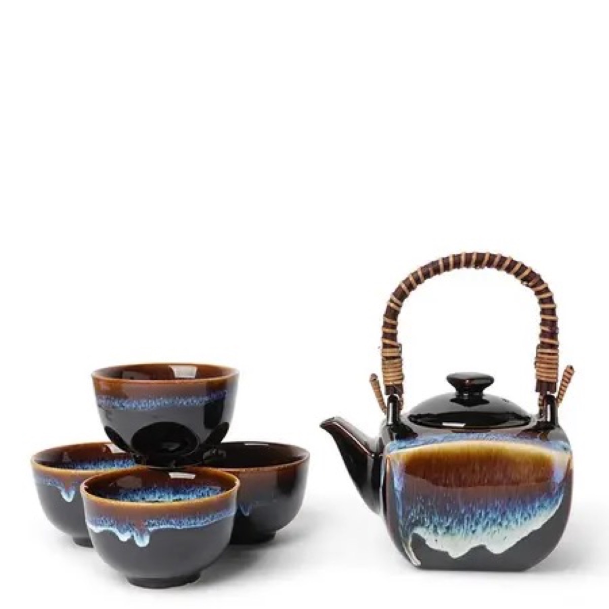 Aequorea square pot tea set. Set includes one teapot and 4 cups. Glazing may vary.